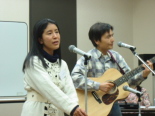 イラクへの自衛隊派兵反対の意思表示として、うたやスピーチで会場は盛り上がった。続けて二次会として会場が「バー非戦」に早変わり。「憲法9条」などの特製カクテルを飲みながら遅くまで交流を深めた。
