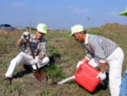 午後からは海岸近くの公園に山桜の苗木を25本植えた。
