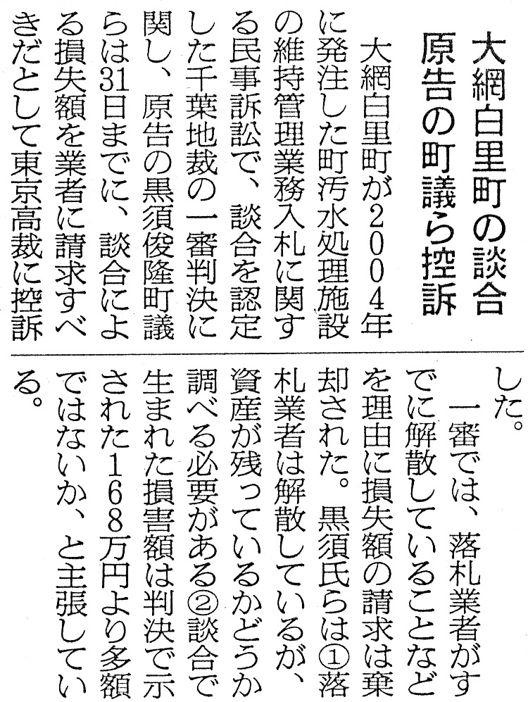 談合住民訴訟、控訴審開かれ即日結審。