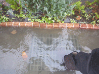 その水路の他、トップマートの駐車場裏の冠水状態も確認してもらった。ここは、ひどいときでは50センチ近く水位が上がり、近所の方は車を避難しなければならないそうだ。今日の雨でも最初に行ったときの長靴では近寄れず、釣り用の40センチ丈の長靴に履き替えた程だった。建設課職員の皆さんに今後の対策をお願いした。