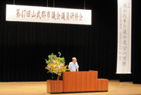 町議会で会派「市民の会」を一緒に組んでいた宮間文夫議員の町政報告会が中部コミュニティセンターで開かれました。